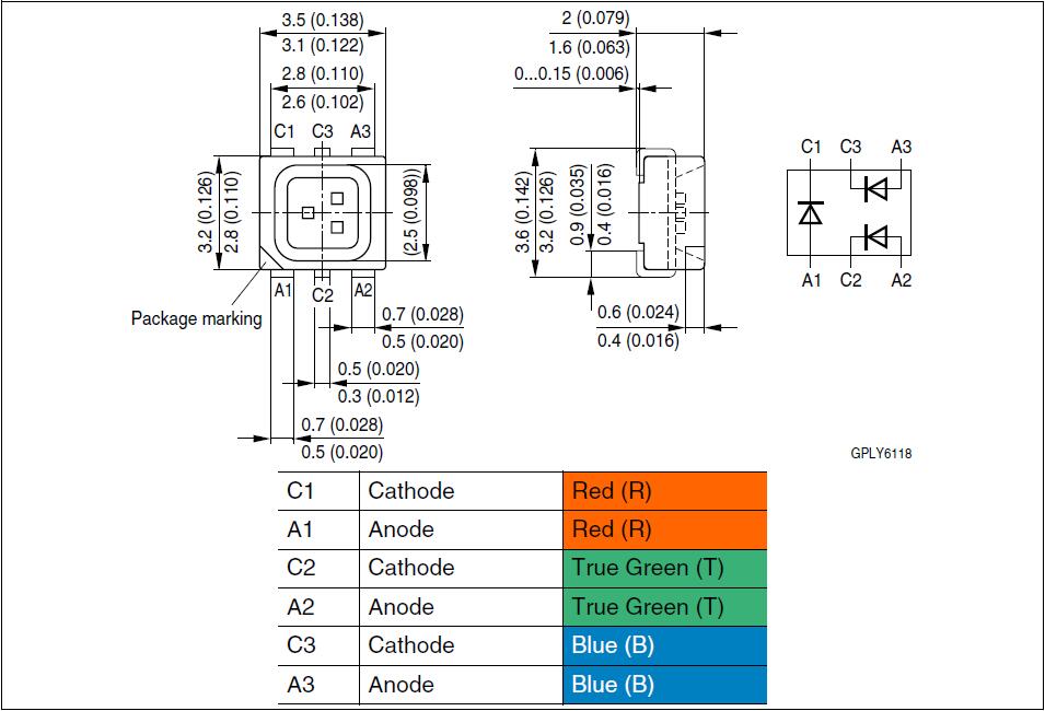 3528(3.5mm*2.8mm),RGB全彩,0.2W,625nm,528nm,470nm